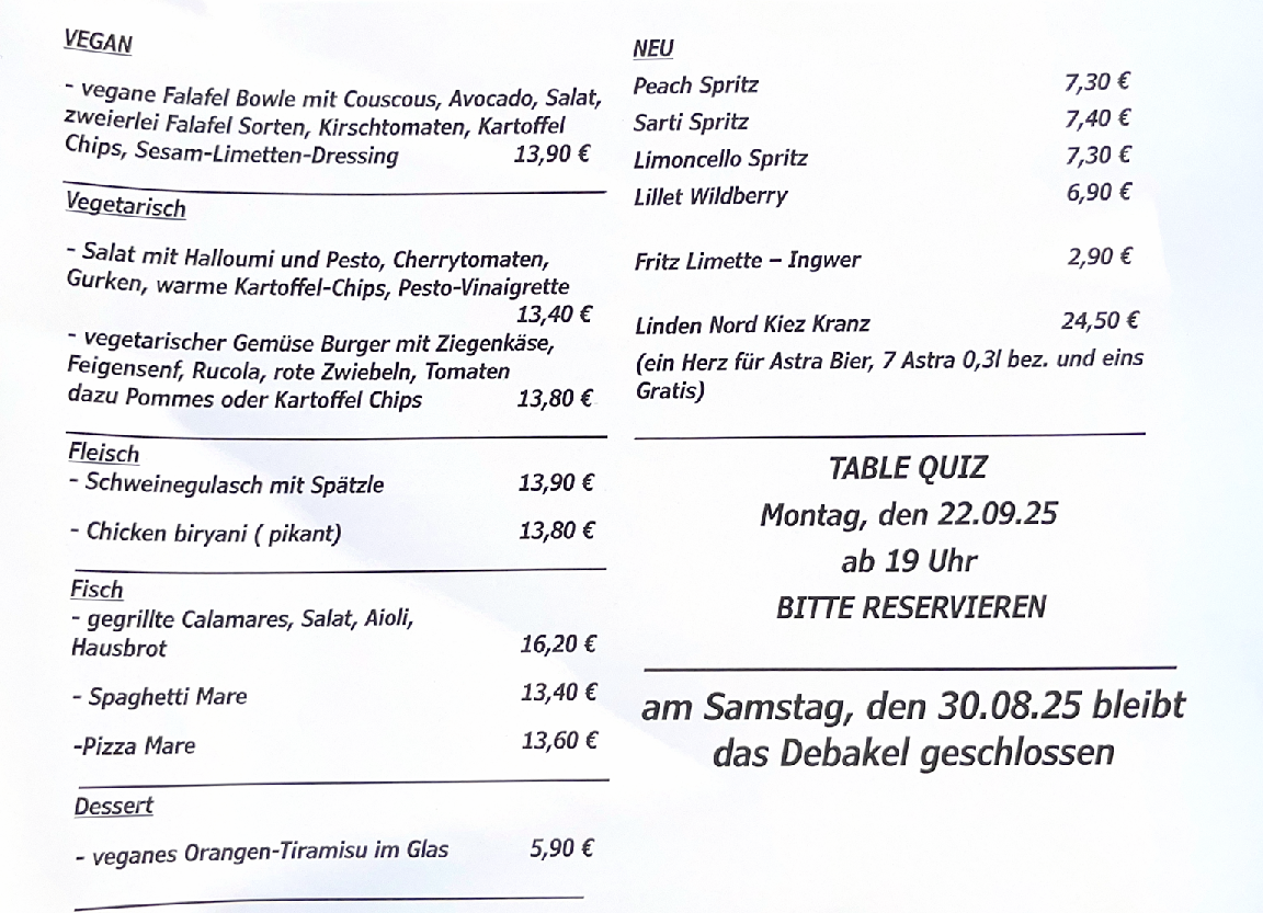 Gaststätte DEBAKEL | Limmerstraße 92 | 30451 Hannover | Tel.: 0511 / 210 47 50